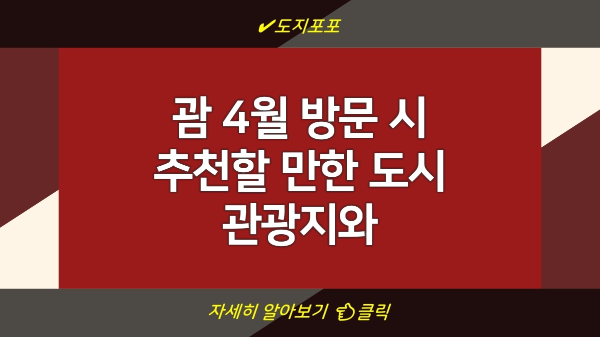 괌은 아름다운 해변, 다양한 문화 체험, 그리고 그림 같은 관광지로 유명한 여행지입니다. 특히 4월은 따뜻한 날씨와 맑은 하늘 덕분에 여행하기에 최적의 시기입니다. 괌의 도시 관광지를 탐방하며 놓쳐서는 안 될 필수 준비물 리스트도 함께 소개합니다. 그럼 괌 여행의 매력을 한껏 느낄 준비를 해볼까요?
