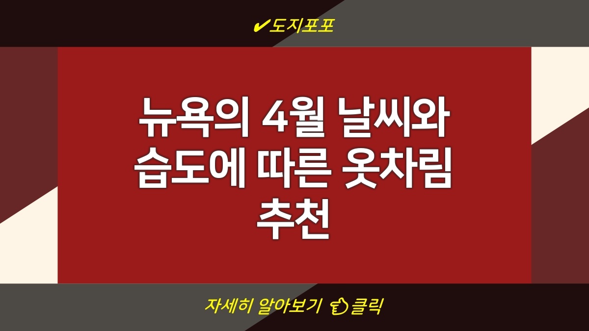 4월의 뉴욕에서는 평균 기온이 섭씨 10도에서 16도 사이로 변화합니다. 그러나 이 기온은 날씨에 따라 크게 달라질 수 있으며, 특히 비가 오는 날에는 체감 온도가 더 낮아질 수도 있습니다. 또, 습도는 보통 50%에서 70%를 오가며, 이는 날씨가 흐리거나 비가 올 때 더 높아질 수 있습니다. 따라서 날씨 변화에 잘 대비해야 합니다. 뉴욕에서 봄의 변화무쌍한 날씨를 경험해 보세요.