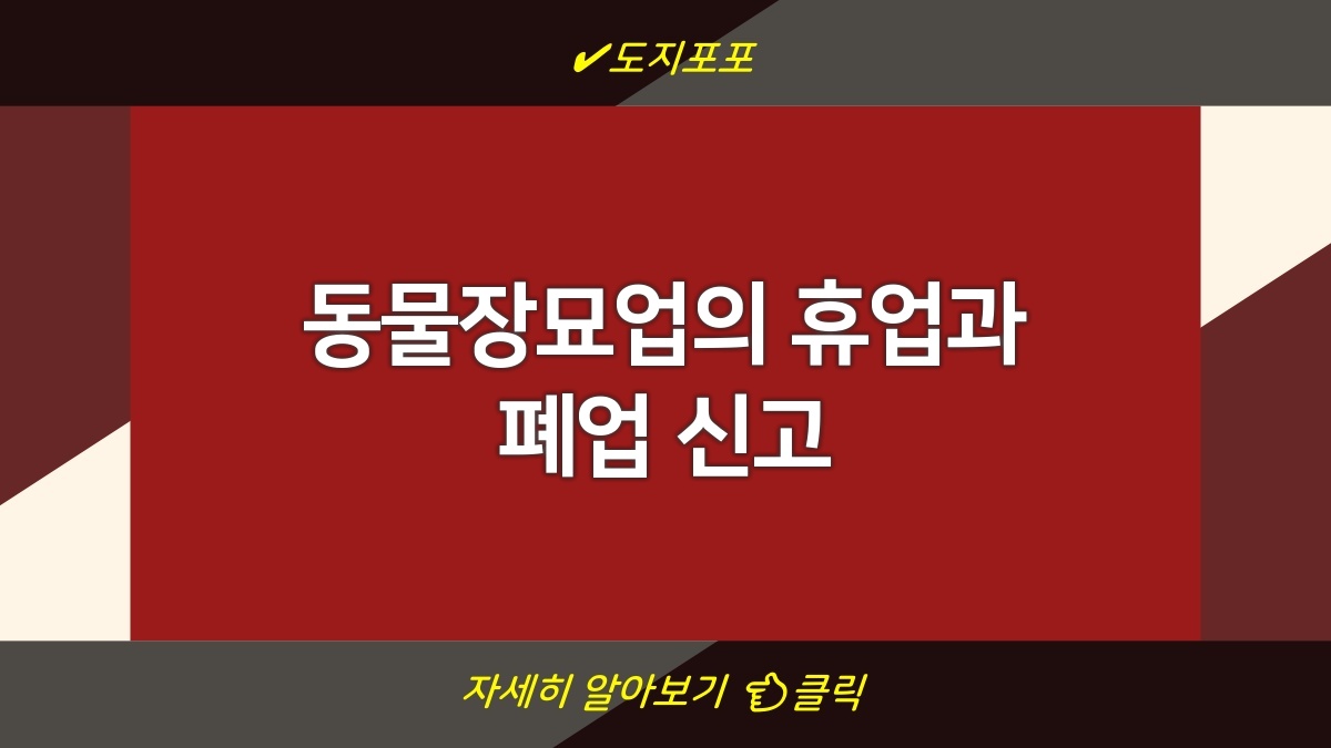 동물장묘업 관련해서 휴업이나 폐업 신고는 꼭 필요한 절차야. 이를 통해 불법 영업을 예방하고 업계의 신뢰를 높이는데 기여할 수 있어. 만약 동물장묘업체가 문을 닫거나 재개할 때는 정해진 절차에 따라서 신고를 제대로 해야 해. 이 과정을 간단하게 알아보자.