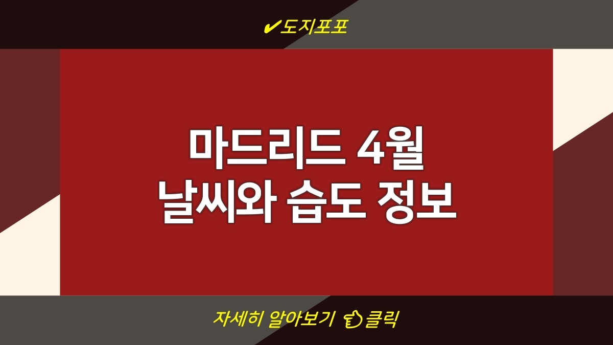 마드리드의 4월 날씨는 따뜻한 편이지만, 지역 특성상 기온 차이가 많이 나기도 해. 이때 습도가 대체로 60% 내외로, 조금 쾌적한 느낌도 있어. 그래서 날씨에 맞는 옷차림이 중요해. 보통 낮에는 가벼운 옷을 입고, 아침 저녁에는 약간 두껍게 입는 게 좋아. 실시간 날씨를 확인할 수 있는 사이트를 이용하면 더욱 도움이 될 것 같아. 특히 비 소식이 있으면 꼭 우산을 챙겨야 해. 날씨에 적응하려면 유용한 정보들 잘 체크해야 하지.