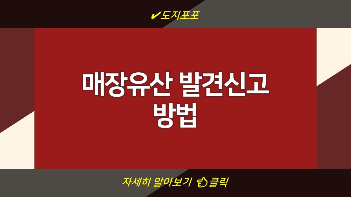 매장유산은 역사적으로 중요한 가치가 있는 유물이나 유적으로, 발견 시 반드시 신고해야 해. 신고를 통해 국가의 보호를 받게 되고, 유산의 훼손을 방지할 수 있어. 발견자가 직접 관할 기관에 신고를 해야 하는데, 온라인으로도 간편하게 가능하니 참고해. 이 절차를 무시하면 법적인 문제가 발생할 수 있으니 주의해야 해. 구체적인 신고 방법은 아래에서 확인할 수 있어.