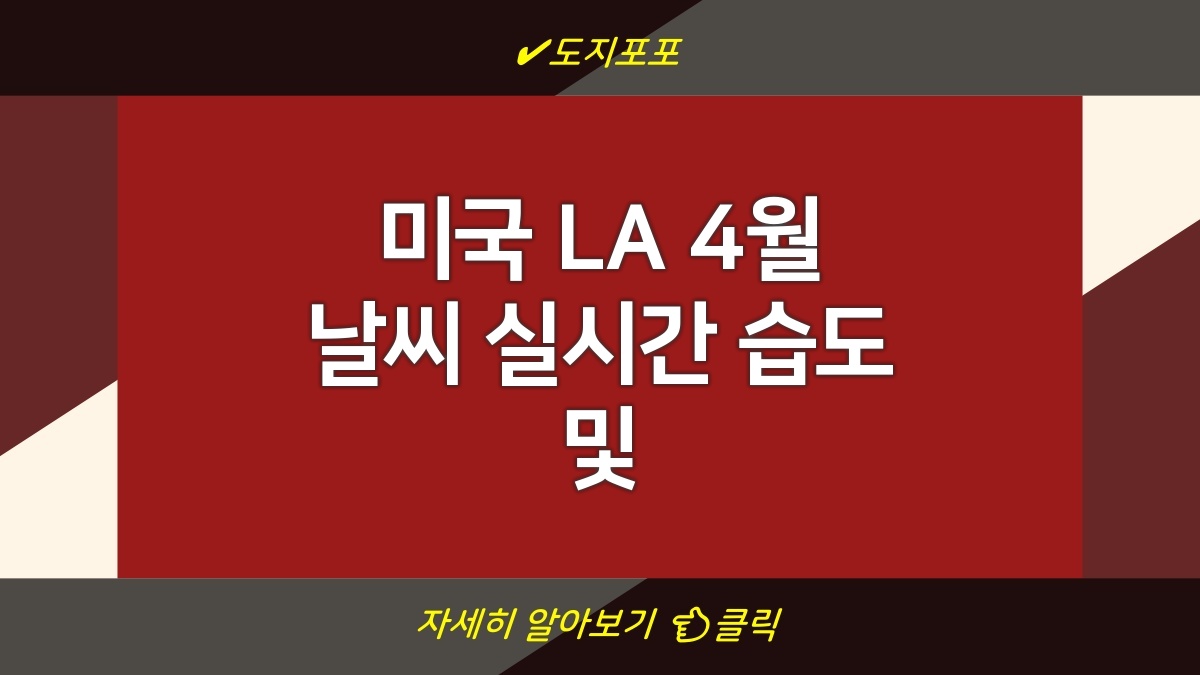 LA의 4월 날씨와 습도는 여행 계획에 중요한 요소입니다. 적절한 옷차림을 통해 날씨 변화에 대응할 수 있고, 더욱 편안한 여행을 즐길 수 있습니다. 실시간 기상 정보를 활용하고 옷차림을 잘 준비하여 멋진 LA 여행을 즐기시기 바랍니다.