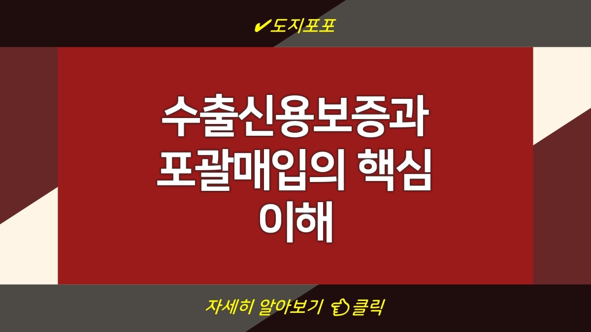 수출 거래를 진행하면서 수출신용보증과 포괄매입의 중요성을 알게 되었을 건데, 빠르게 변화하는 국제 무역 시장에서 이 서비스들을 잘 활용하는 것이 자금을 효율적으로 관리하는 데 큰 도움이 됨. 두 서비스 모두의 장점과 단점을 이해한 후, 본인한테 맞는 방법을 선택하면 좋겠음. 수출 관련 업무를 하지만, 이 서비스들에 대한 정보가 부족한 사람이라면 전문가에게 상담해보는 게 답임. 그러면 더 좋은 거래를 위한 기반을 다질 수 있음.