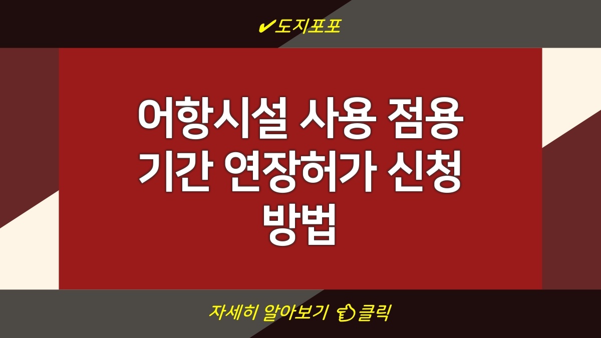 어항시설을 사용할 때 점용 기간을 연장하려면 몇 가지 절차를 거쳐야 해. 점용 기간 연장허가를 받은 후에는 어항시설을 계속 사용할 수 있으니까, 사전에 준비해두는 게 중요해. 정확한 정보가 없다면 불이익을 감수해야 할 수도 있어. 그래서 이번에는 어떻게 점용 기간을 연장할 수 있는지, 필요한 서류는 뭐가 있는지를 알아보려고 해. 꼭 끝까지 읽어보길 바래.