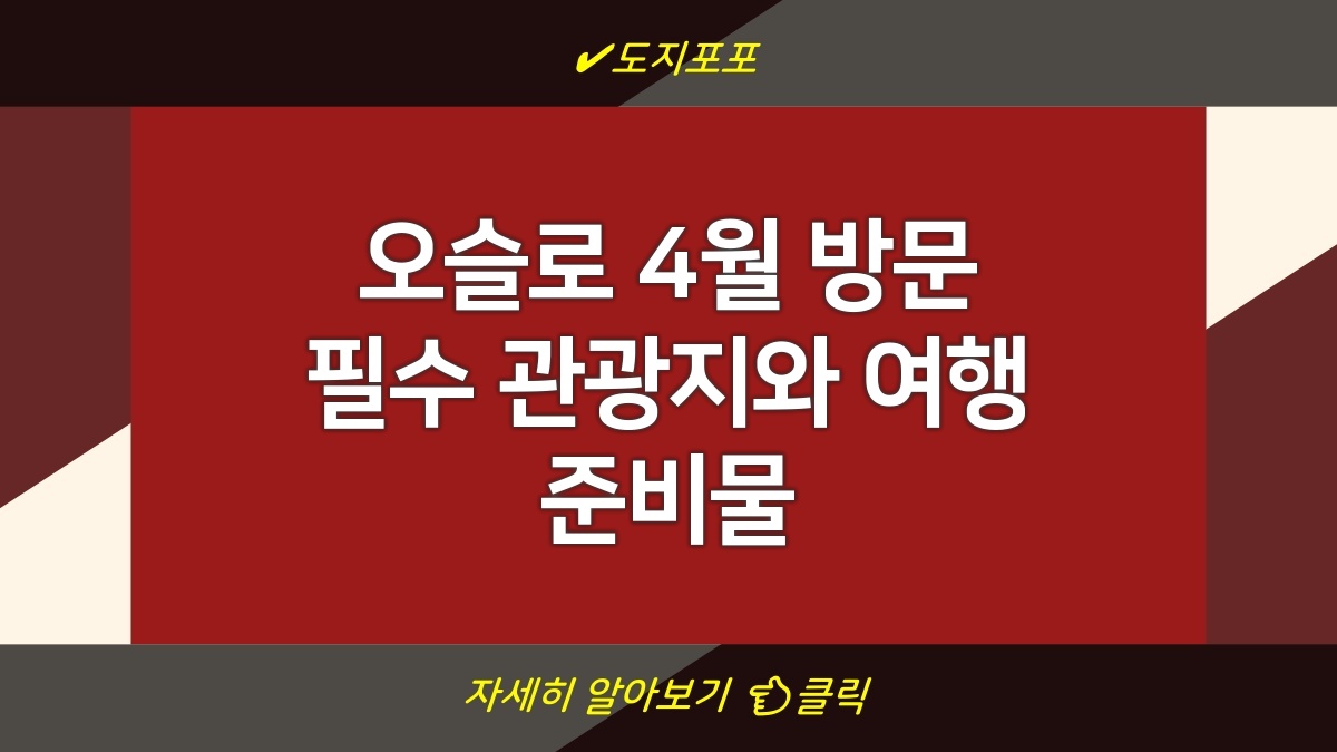 노르웨이의 수도 오슬로는 4월에 방문하기 좋은 여러 관광명소가 있습니다. 이 시기는 겨울이 끝나고 봄이 시작되는 시점으로, 자연이 깨어나는 모습을 경험할 수 있습니다. 오슬로의 유명한 관광지는 마르메르스톤공원과 오슬로 오페라 하우스를 포함해 다양한 예술과 문화를 체험할 수 있는 장소들로 가득합니다. 이 외에도 즐길 거리와 먹거리가 풍부하여 여행자들에게 매력적인 환경을 제공합니다. 여행을 계획할 때 필요한 준비물도 함께 고려하면 더욱 알찬 여행이 될 것입니다.