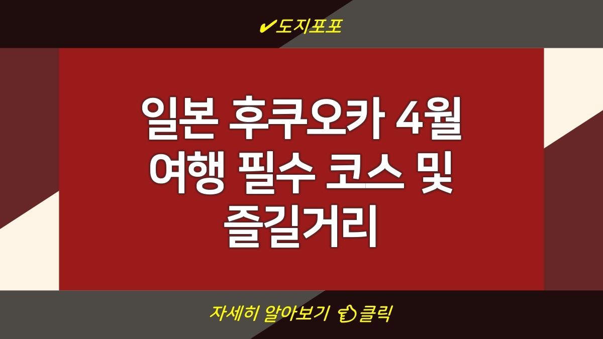 후쿠오카는 4월에 꽃이 피고 기온이 따뜻해져서 여행하기 딱 좋다. 멋진 경치와 맛있는 음식을 동시에 즐길 수 있는 곳이라서 추천할 만한 여행 장소가 많아. 후쿠오카의 대표적인 관광지와 가볼 만한 곳에 대해 알아볼게. 봄 여행을 계획하고 있다면 이 글을 참고해보는 게 좋을 것 같아.