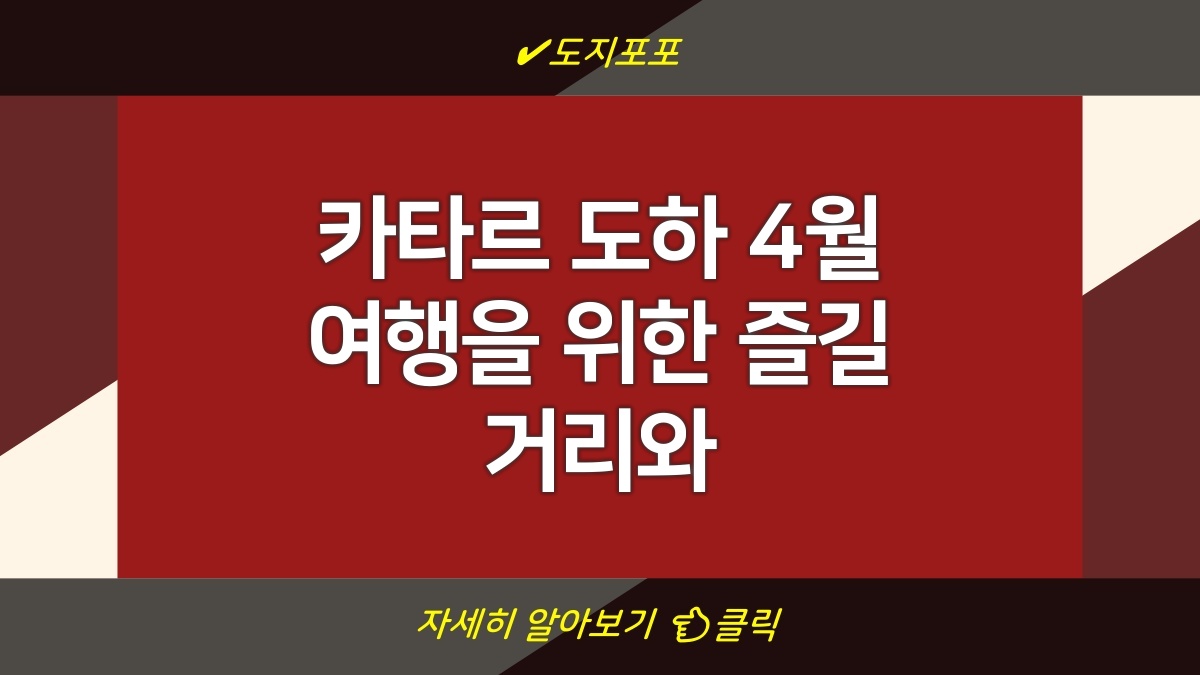 카타르 도하에서는 4월에 특별한 경험을 선사하는 관광지들이 많이 있습니다. 이 달은 화창한 날씨와 함께 관광을 즐기기에 완벽한 시점으로, 역사적인 명소부터 현대적인 건축물까지 다양한 선택지를 제공합니다. 특히, 도하의 문화와 전통을 체험할 수 있는 곳이 많아 여행객들이 몰리는 시기입니다. 또한, 필수 준비물이 무엇인지 알아두면 더욱 알찬 여행이 될 것입니다. 다양한 매력을 가진 도하에서의 하루를 만끽해 보세요.