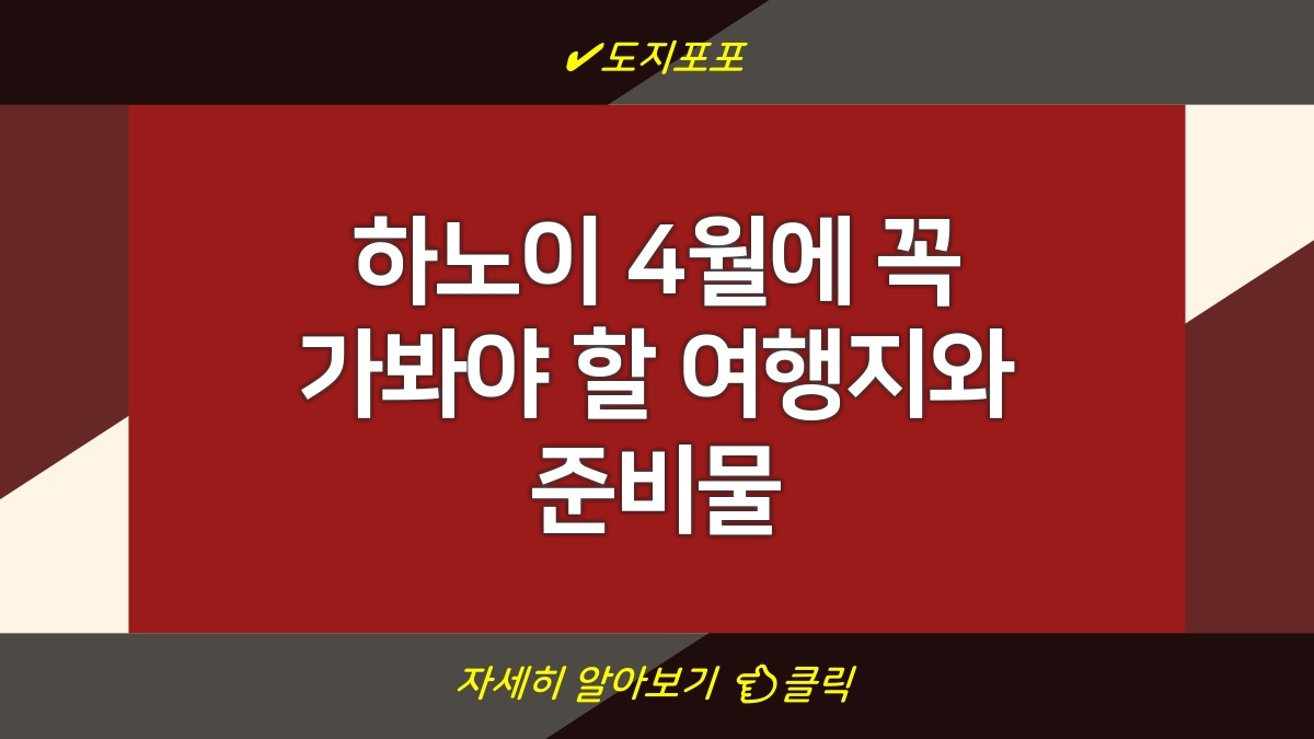 베트남 하노이는 역사와 현대가 조화롭게 어우러진 매력적인 도시로, 특히 4월에는 따뜻한 날씨와 함께 다양한 문화 행사들이 열립니다. 이 시기에 방문할 만한 장소로는 호안끼엠 호수, 문묘, 락손 거리 등이 있으며, 각각의 장소는 독특한 매력을 지니고 있습니다. 또한, 거리 음식도 풍부하니 현지 음식을 꼭 즐며 특별한 경험을 해보세요. 여행 준비 시에는 가벼운 옷과 편안한 신발, 기본적인 여행 필수품을 챙기는 것이 좋습니다.