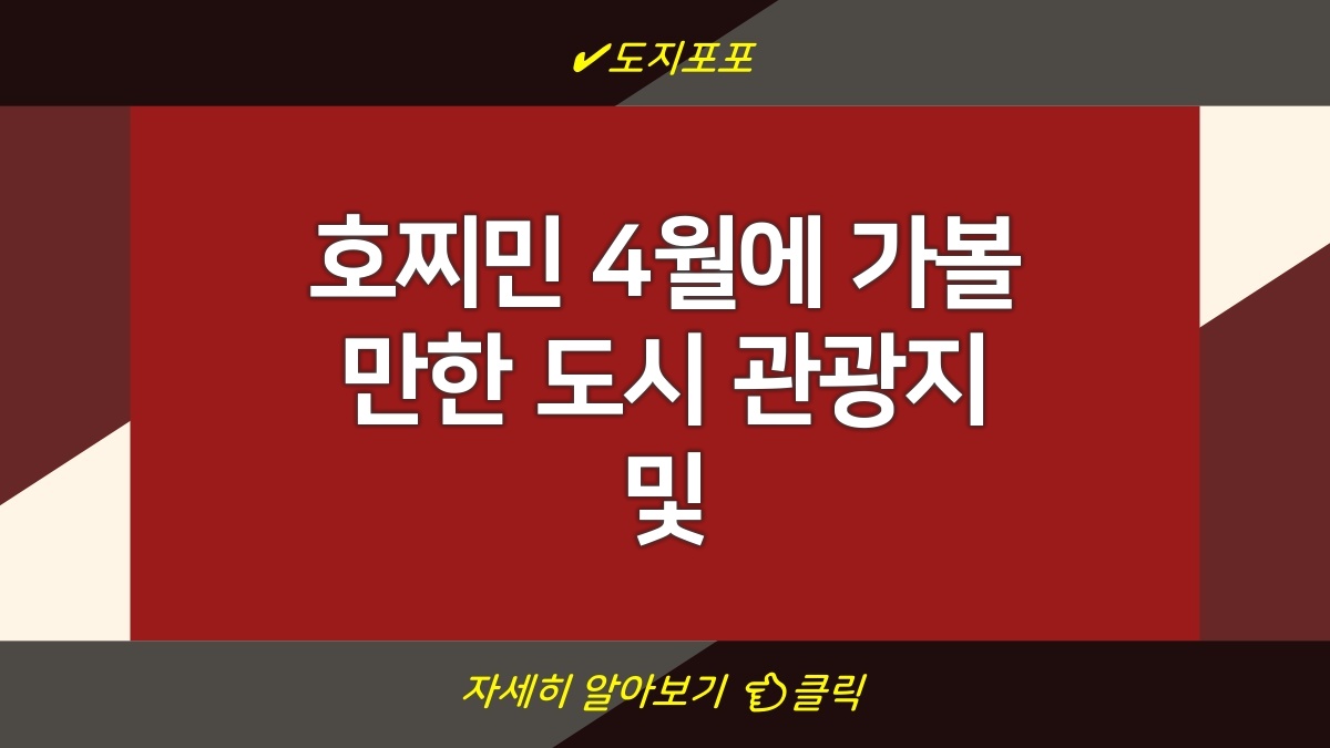 호찌민시는 풍부한 역사와 문화가 어우러져 있는 매력적인 관광지입니다. 특히 4월은 따뜻한 날씨와 다양한 축제로 여행하기에 적합한 시기입니다. 이때 가볼 만한 명소로는 전쟁기념관, 벤탄 시장, 사이공 중앙 우체국, 그리고 노틀담 성당 등이 있습니다. 여행 준비물로는 편한 신발, 카메라, 우산, 현금 및 카드, 그리고 간단한 의약품이 포함됩니다.