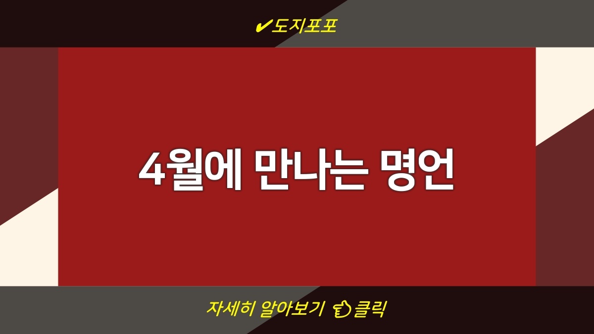마지막으로, 4월은 새로운 시작이니 부정적인 생각은 과감히 버리자. "더 이상 주저하지 마라"는 말이 필요할 때야. 명언 하나로 오늘 하루도 더욱 힘차게 시작해보길 바래. 명언이 너에게 긍정적인 영향을 미치길 응원해.